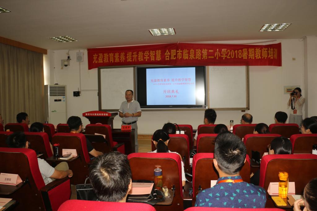 典礼伊始,高旗举副经理致欢迎辞,他首先代表太阳集团tcy8722对合肥市临泉路第二小学老师的到来表示热烈欢迎;随后,他向老师们简单介绍了太阳集团官网和公司的历史及现状;最后,他衷心祝愿所有老师在本次培训班中能够生活愉快、学有所获。