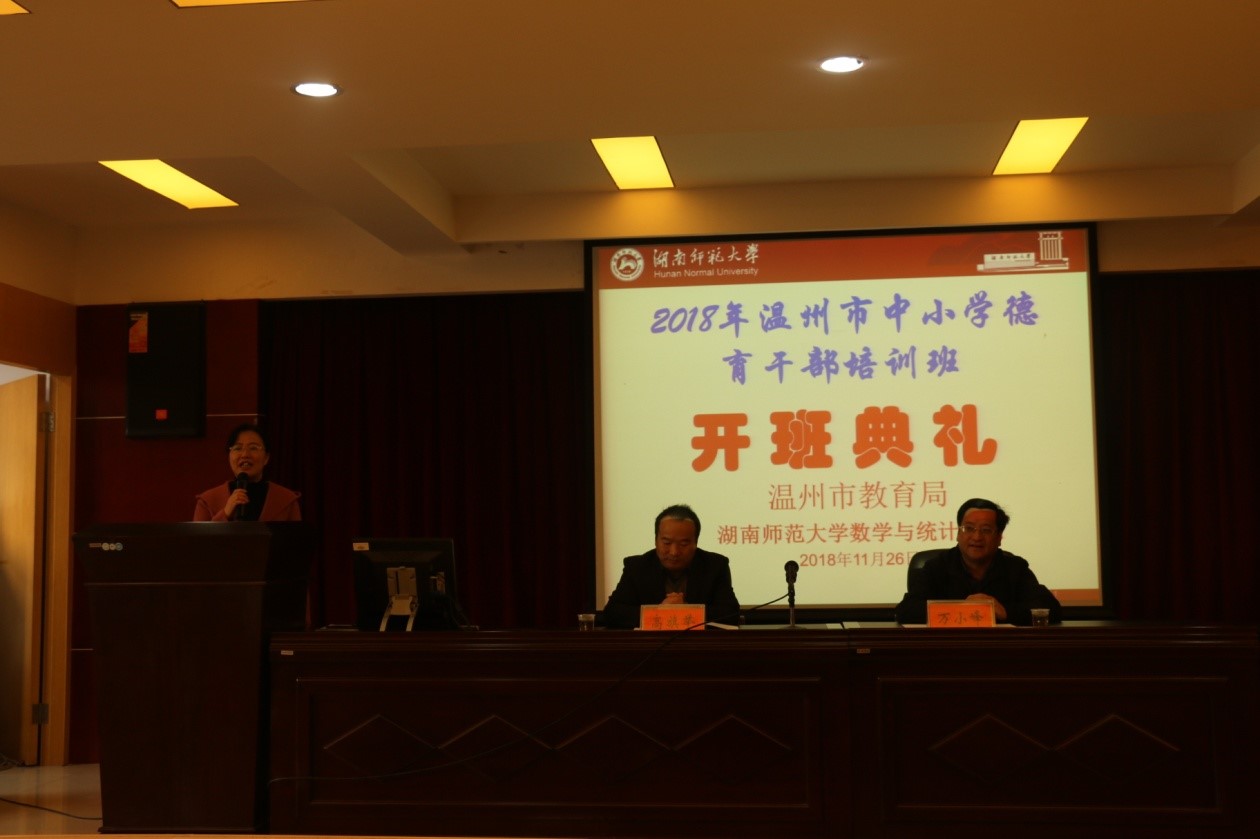 11月26日上午,2018年温州市中小学德育干部培训班开班典礼在太阳集团tcy8722309报告厅顺利举行。温州市教育局基教处处长万小峰,太阳集团tcy8722副经理高旗举出席了典礼,典礼由太阳集团tcy8722成教办主任尹冬平主持。