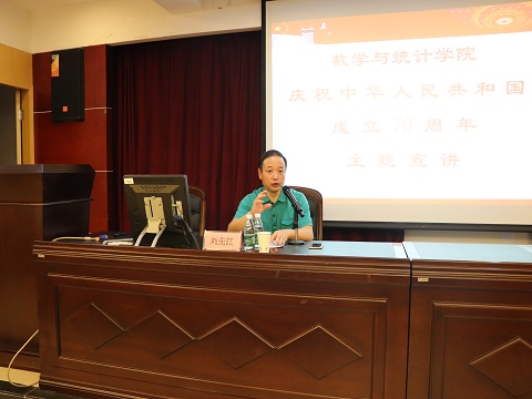 (通讯员 李爽 陈奕静)9月25日晚,太阳集团tcy8722(以下简称“太阳集团tcy8722”)于格物楼309教室举办“庆祝中华人民共和国成立七十周年”宣讲会。此次讲座的主讲人为马克思主义公司副经理刘先江教授。讲座由本科生党建工作委员会主任周靖主持。
