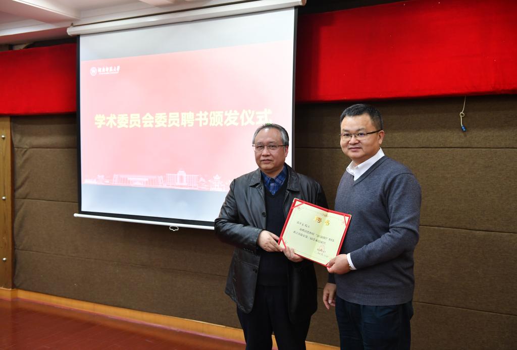 科技处副处长余自娥宣读《关于计算与随机数学教育部重点实验室聘任第三届学术委员会委员的通知》。欧阳峣为新一届实验室学术委员会委员颁发聘书。