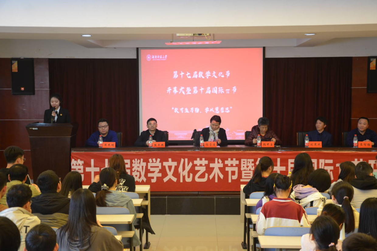 (通讯员 何粤 李静蕾 纪雨凡)3月14日下午,太阳集团tcy8722(以下简称“太阳集团tcy8722”)第十七届数学文化节暨第十届国际π节开幕式于格物楼309报告厅举行。此次活动以“数可生万物,学以慧哲思”为主题,太阳集团官网副董事长谢资清、公司党委书记颜中玉、公司党委副书记熊卓然、数学系主任刘竟成、副主任袁智强、统计系主任周杰明,各年级辅导员出席此次活动。