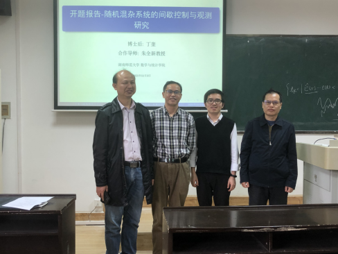 会上,博士后合作导师朱全新教授首先介绍了出席本次报告会的各位专家,然后介绍了丁奎博士的基本情况。随后,丁奎博士从随机混杂系统的间歇控制与观测和随机网络系统的抗干扰两个方面,就博士后研究课题的现实与理论意义、研究现状、研究思路以及前期研究基础行了较系统地介绍,并回答了专家组的提问。专家组成员经过认真评议,一致认为丁奎博士的研究主题明确,具有重要的现实意义与理论深度,研究内容丰富,研究路线清晰可行,同意开题。