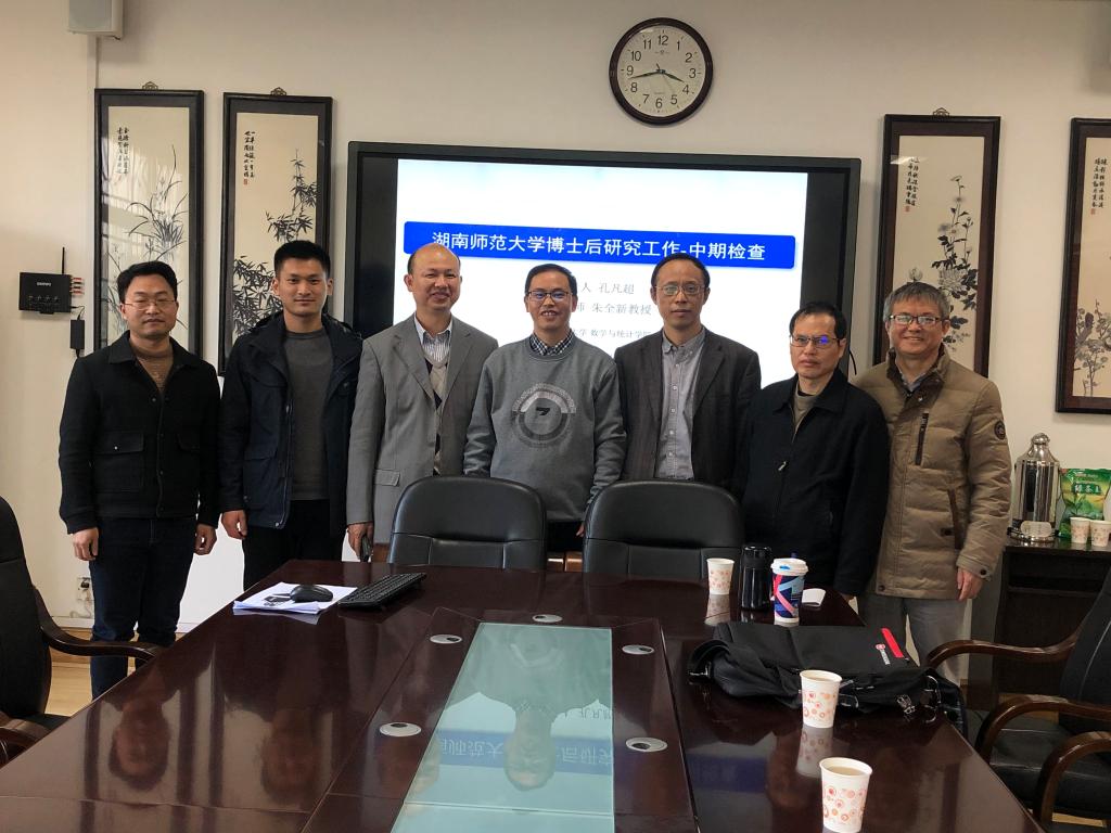 会上,朱全新教授首先介绍了出席本次中期考核报告会的各位专家。孔凡超博士后汇报进站以来的研究情况,主要讨论了不连续Filippov系统的周期解存在性,并考虑时滞对系统周期解的存在性的影响,进而获得周期解的时滞依赖存在性条件。随后,探讨了建立新的不连续系统固定时间稳定定理,给出新的较为宽松的Lyapunov条件,获得新的更加精确的停息时间估计式,并将所获得的结果应用到不连续网络系统上。同时还介绍了下一步关于随机扰动对不连续系统稳定性影响的研究问题。然后,胡文杰博士后汇报了进站以来的研究情况,主要考虑了随机偏泛函微分方程解的存在唯一性、稳定性,随机吸引子的存在性以及不变流形的存在性及其光滑性。最后,考核组评委对孔凡超和胡文杰博士后在站期间取得的业绩成果进行了评估并给予了充分的肯定,对其下一步的研究工作提出了建设性意见和建议。
