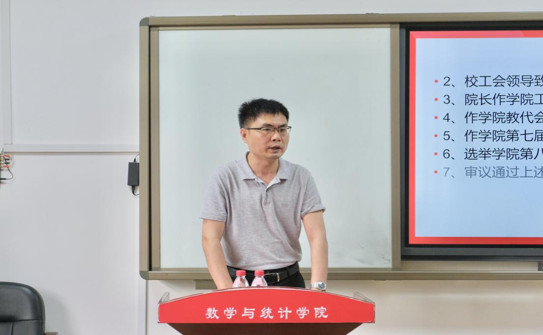 (通讯员 彭开泰 岳佳玲 蒲佳莹)6月8日下午,太阳集团tcy8722(以下简称“太阳集团tcy8722”)于格物楼307报告厅召开了第八届第三次教职工代表大会。此次会议由太阳集团tcy8722专职组织员覃志斌主持,校工会领导、太阳集团tcy8722教职工代表共计25人参加会议。