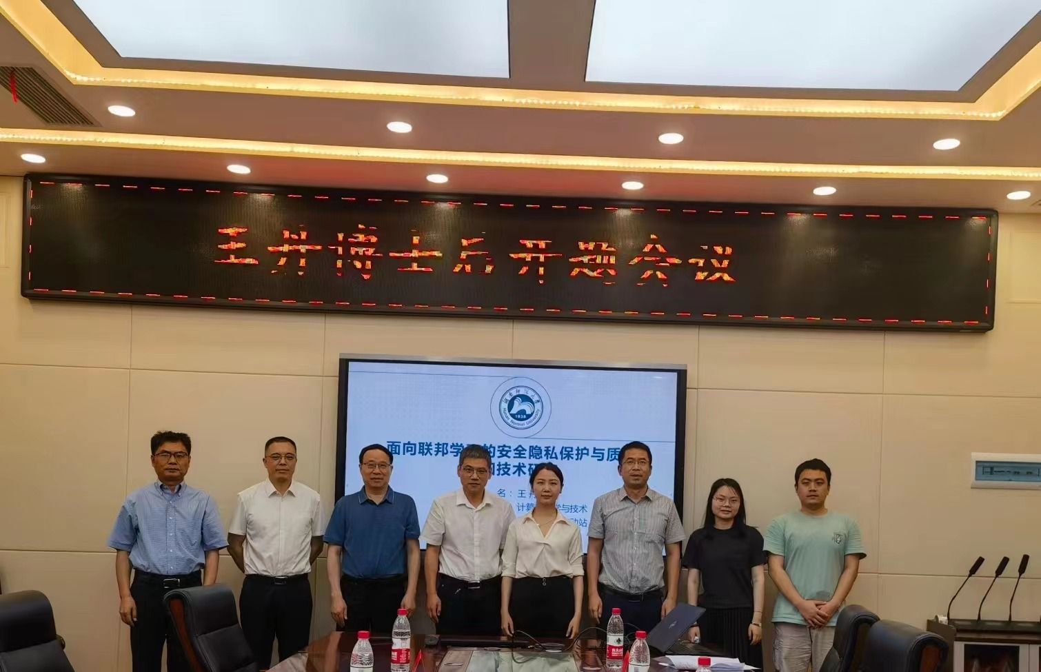 会上,代建华教授首先介绍了出席本次开题报告会的各位专家,然后介绍了王丹博士的基本情况。随后,王丹博士针对联邦学习的安全隐私保护与质量感知问题,从博士后研究课题的背景意义、研究现状、研究内容、研究方法以及前期研究基础进行了系统的介绍,并回答了专家组的提问。最后,评审专家对王丹博士开题报告进行了评估并给予了充分的肯定,对其下一步的研究工作提出了建设性意见和建议,最终经评审组考核,王丹博士后顺利开题。