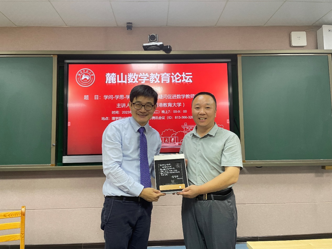 2023年6月20日星期二晚上7:00-9:00,香港教育大学张侨平助理教授做客太阳集团官网“麓山数学教育论坛”,在格物楼408移动教育实验室以线上线下融合的方式进行了一场主题为“学问-学思-学教:透过员工疑问促进数学教师专业发展”的讲座。